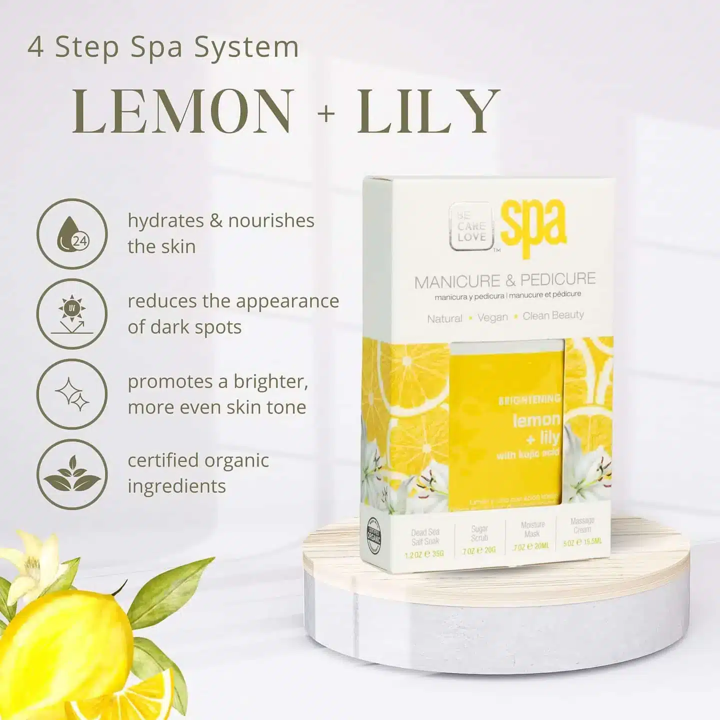 Prenez un moment pour vous détendre, vous rafraîchir et vous reconnecter avec notre formule revitalisante au citron et à l’acide kojique pour une peau plus éclatante et plus saine. Votre corps et votre esprit vous remercieront.